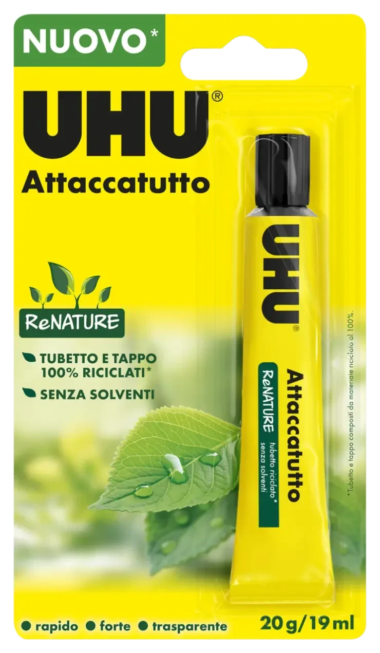 UHU Attaccatutto Renature Senza Solventi, il moderno liquido attaccatutto ad altissima performance senza solventi.