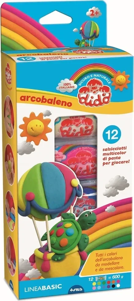 Il set Didò Arcobaleno è perfetto per i piccoli creativi! Include 12 salsicciotti multicolore da 50 g ciascuno, racchiusi in un pack coloratissimo della linea basic. Realizzato con ingredienti naturali a base di farina di grano, è ideale per stimolare la psicomotricità e introdurre i bambini ai concetti di tridimensionalità. Un prodotto 100% italiano, sicuro e divertente.