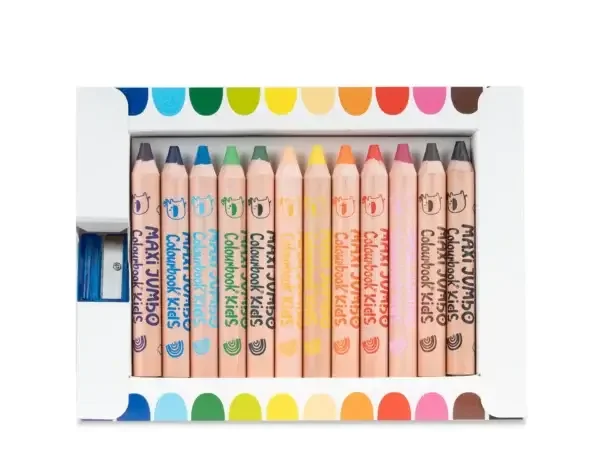 Il tratto dei Maxi Jumbo è super morbido ed hanno una punta da 10mm con fusto in legno da 15mm, tutti i 12 colori sono super brillanti e acquerellabili.