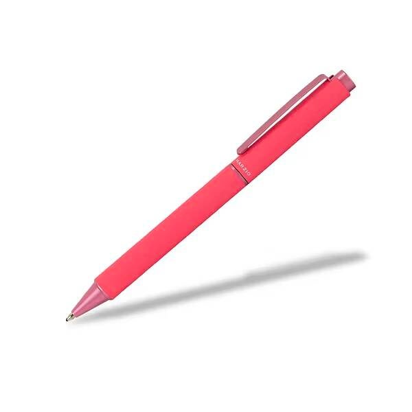 Penne a sfera colorata dal tatto soft touch caratterizzata, inoltre, da un design pulito ed essenziale. I dettagli metallici riprendono il colore del fusto della penna. Disponibile in varie colorazioni, scegli quella che si abbina di più ai tuoi look. Ottima anche come idea regalo da abbinare ad uno dei nostri quaderni o astucci. CARATTERISTICHE: Apertura con meccanismo a rotazione. Corpo in ottone laccato. Punta in metallo dal tratto medio. Utilizza refill universale per penna a sfera. Dimensioni: 14L x 1,5A cm; peso: 25 g.