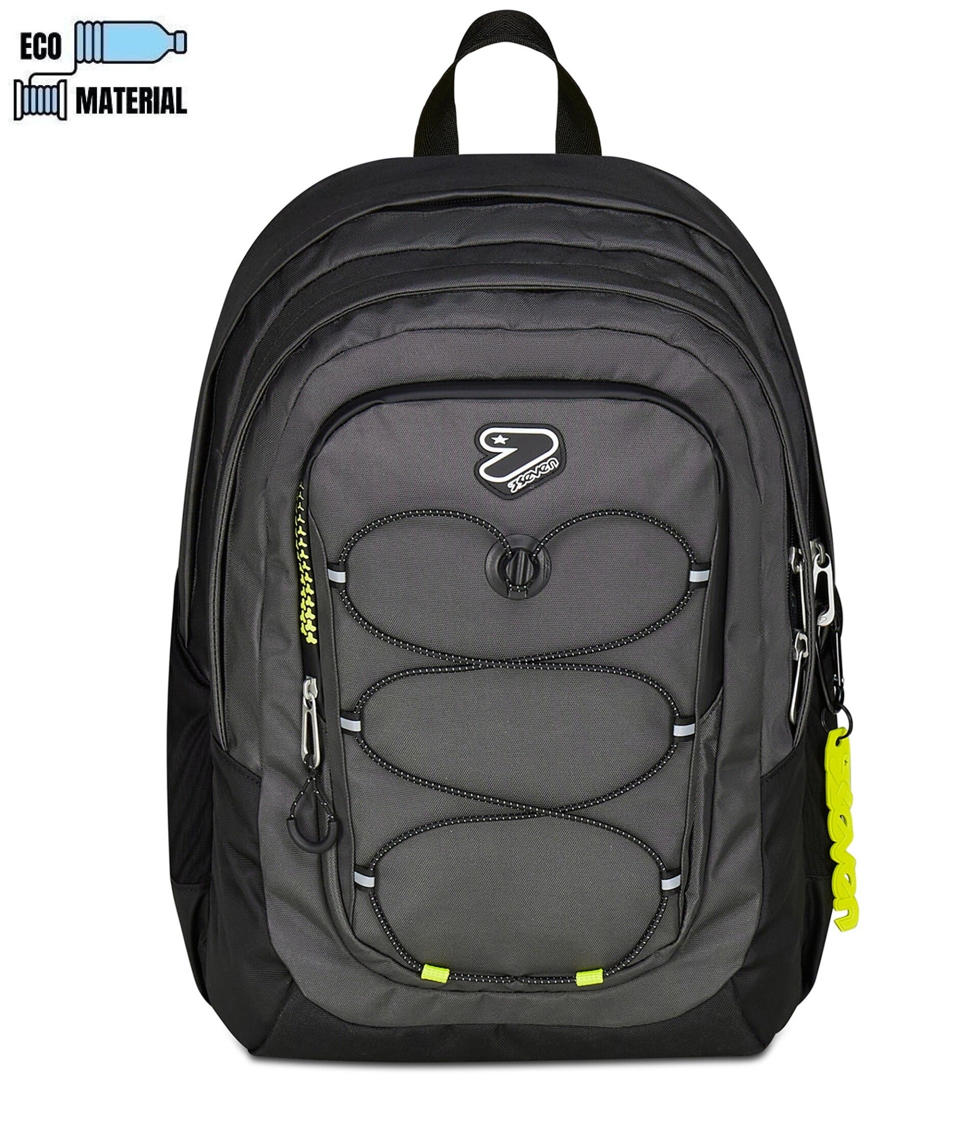 Comodo, pratico e con dettagli dallo stile distintivo, lo zaino Tech ti semplifica la giornata. Dotato di un ampio doppio scomparto con tasca interna per PC o tablet, nello zaino Tech ogni cosa avrà il suo posto dedicato, potendo contare anche sulle due tasche laterali porta borraccia e la tasca frontale per telefono, auricolari e altri piccoli accessori. Il sistema frontale di compressione del carico e lo schienale preformato con spallacci imbottiti garantiscono grande comfort quando lo si indossa sulle spalle per tutti gli spostamenti della giornata. Inoltre è realizzato in tessuto 100% poliestere riciclato, certificato GRS, ricavato da 25 bottiglie in PET da 500 ml ciascuna, garantendo tutti gli standard qualitativi dei nostri materiali.