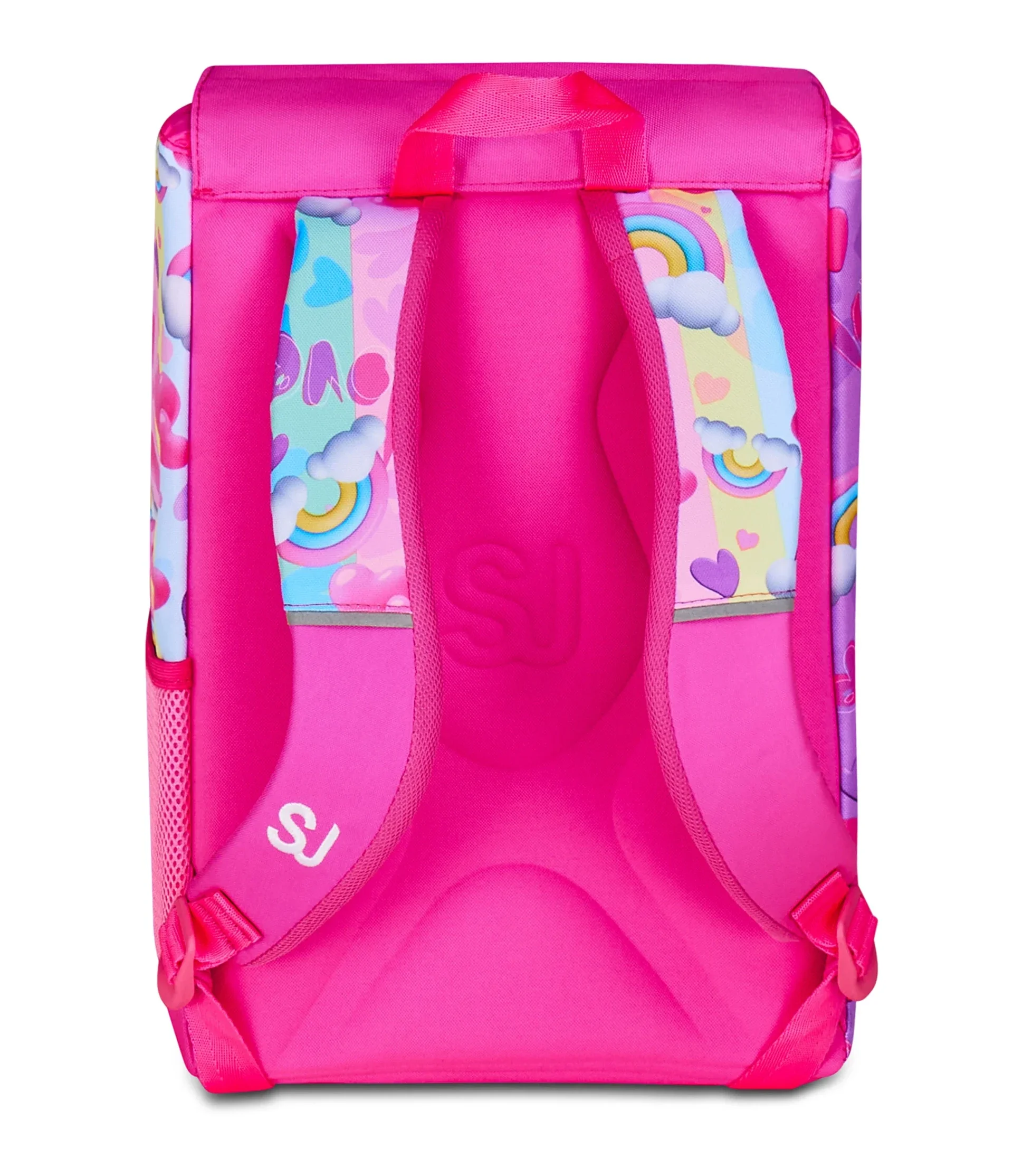 Ciao! Sono FLYUNICORN GIRL, lo zaino estensibile SJ GANG dal CUORE IN PAILLETTES per andare a scuola e giocare! Estrai l'inserzione a forma di ALI da sotto la pattina! Ho un doppio scomparto spazioso, di cui puoi aumentare facilmente la capienza tramite le zip laterali per poter accogliere e distribuire in modo ottimale libri, quaderni e tutto ciò che ti serve per la tua giornata, potendo sfruttare anche la tasca frontale. Inoltre, sono davvero comodo da indossare sulle spalle, grazie a schienale e spallacci confortevoli. In più, il fondo integrato mantiene la mia struttura inalterata, garantendo la stabilità del contenuto anche a pieno carico.