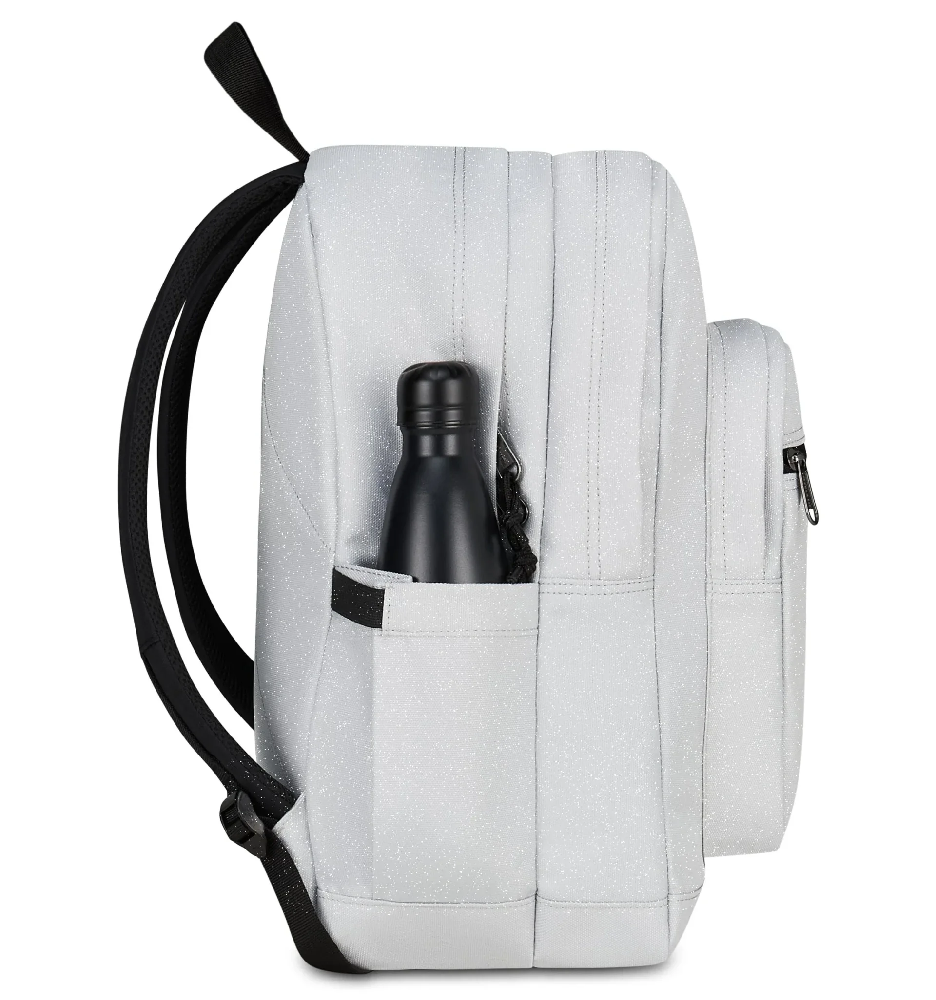 Il tessuto del Jelek Shine ha una finitura glitter ed è ricavato dal riciclo di 31,4 bottiglie in PET da 500ml. Inoltre ha tutto lo spazio di cui hai bisogno grazie ai suoi 34 litri di capacità. Due capienti scomparti all’interno dei quali ci sono tasche per ogni necessità: dal PC o tablet fino alla borraccia, ogni cosa è al proprio posto. Fondo rinforzato e spallacci e schienale imbottiti ti assicurano il giusto comfort anche a pieno carico.