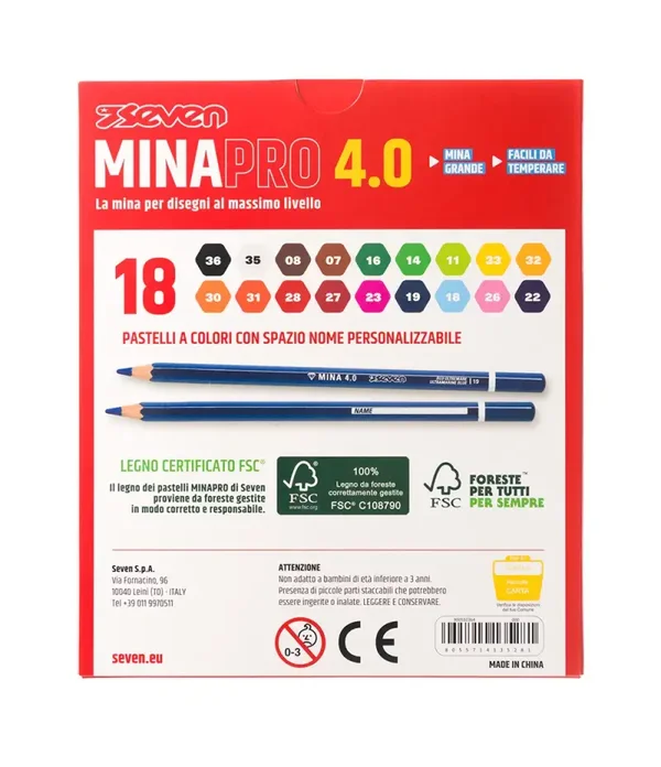 Fusto a chiave esagonale 7,6 mm. Mina grande 4.0. Legno certificato FSC®. Facile da temperare, con i più comuni temperini, dotati almeno di due fori.