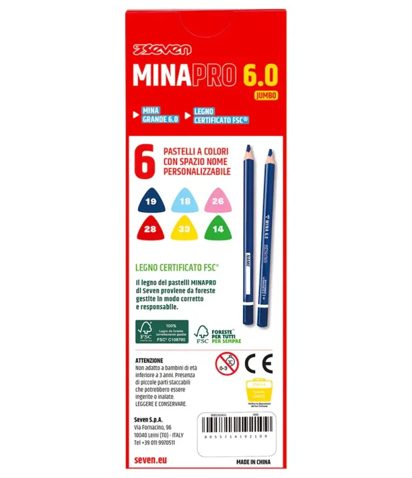 6 Pastelli a Colori Seven® Mina Pro 6.0