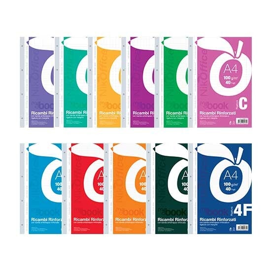 Ricambio in formato A4. fori con banda rinforzata per evitare lo strappo dei buchi. Carta bianca da 100 gr 40 fogli
