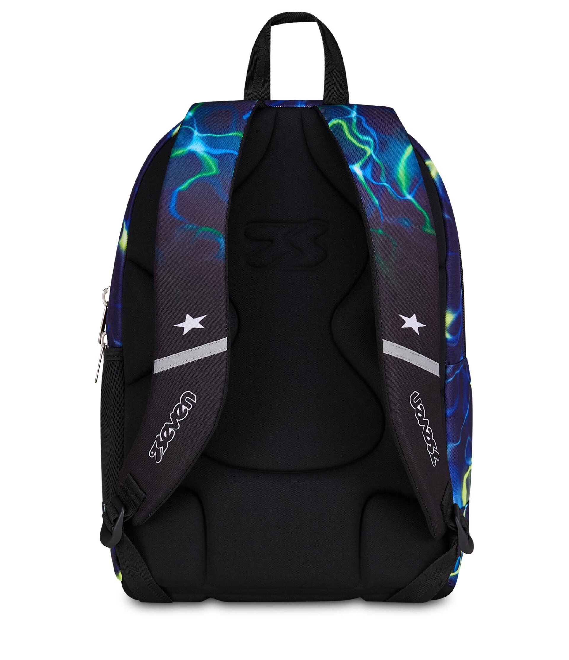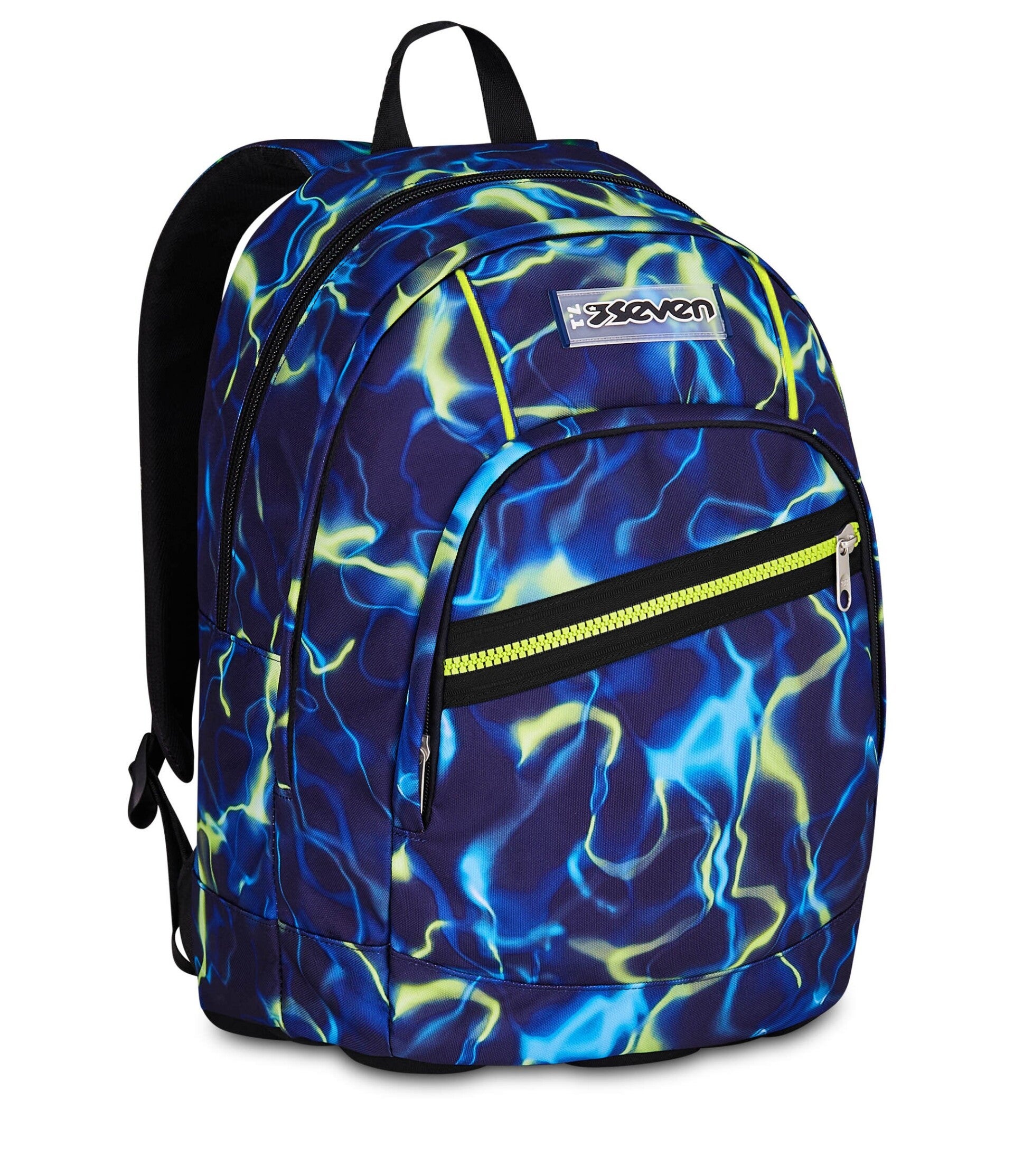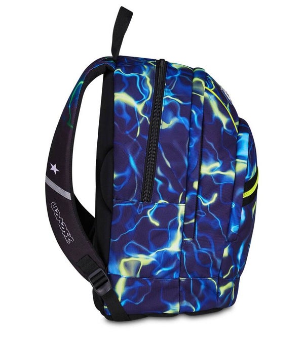 Lo zaino Seven Dual ElectricVibe è progettato per i ragazzi che vogliono affrontare la scuola con uno stile deciso e "elettrizzante". La sua grafica, che richiama scariche di energia nei toni del blu elettrico e giallo fluo, lo rende uno degli zaini più ricercati per le scuole medie e superiori.